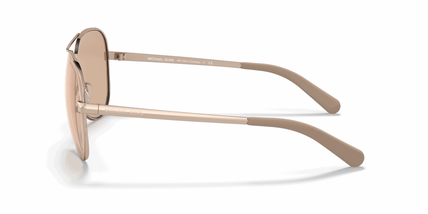 Nieuwe zonnebril nodig? Zoek niet verder! De Michael Kors 5004 1017R1 is namelijk onmisbaar in jouw collectie. Dit prachtige dames model is brons en is gemaakt van metaal. De bruine zonnebrilglazen zorgen voor een verhoogd contrast en blokkeren blauw licht. Deze zonnebril heeft gespiegelde glazen. Deze glazen reflecteren meer licht en zorgen ervoor dat niemand jouw ogen ziet. Gespiegelde zonnebrillen zijn vooral gewild onder sporters. De Michael Kors 5004 1017R1 is een piloten zonnebril. Dit past goed bij een ovale gezichtsvorm. Dit montuur valt klein.
